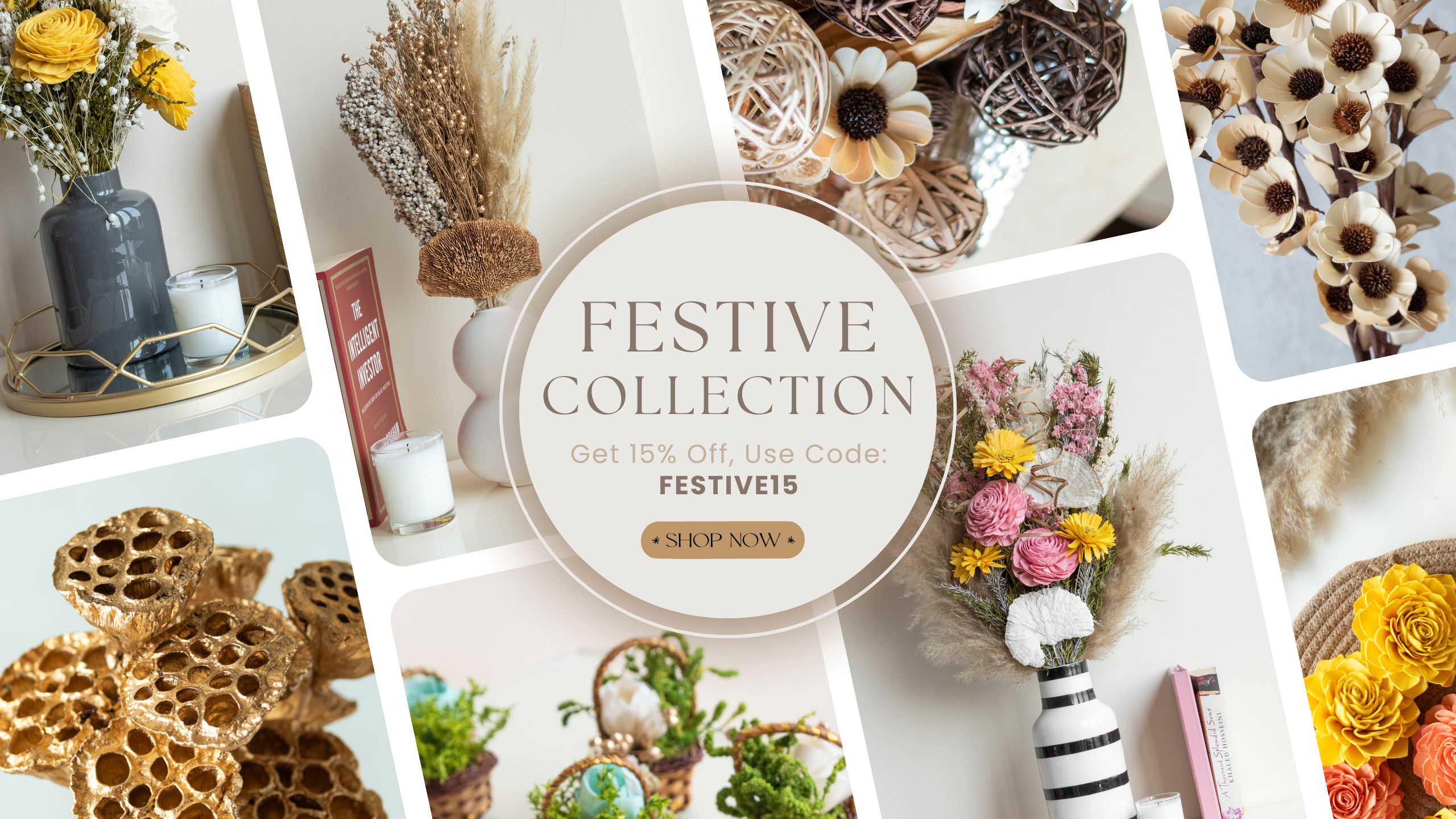 At FNF, we believe that every moment deserves to be adorned with beauty, sustainability, and a touch of your own creativity. We proudly stand as pioneers in embracing sustainability and championing a greener approach to floral aesthetics. Our carefully curated collection of dried flowers is a testament to our commitment to Mother Earth. Each product is a celebration of nature's artistry, carefully preserved to capture its original splendor and grace.