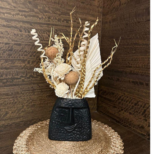 Red Dried German Statice Grass (100 Grams) in The Quirky Face Vase
