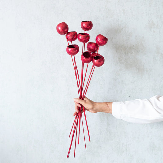 Red Glittery Bel Cup Sticks (Set Of 10)
