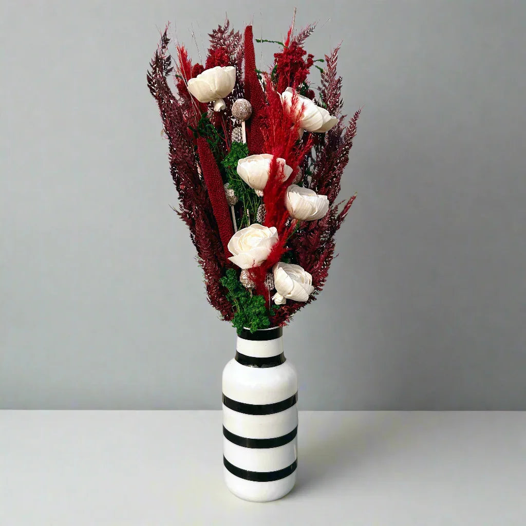 This Aurelia Bunch is a perfect accent to make any space look vibrant. The red and green colours of this bunch with a touch of white handmade sola flowers can make any space look stunning and super stuning.