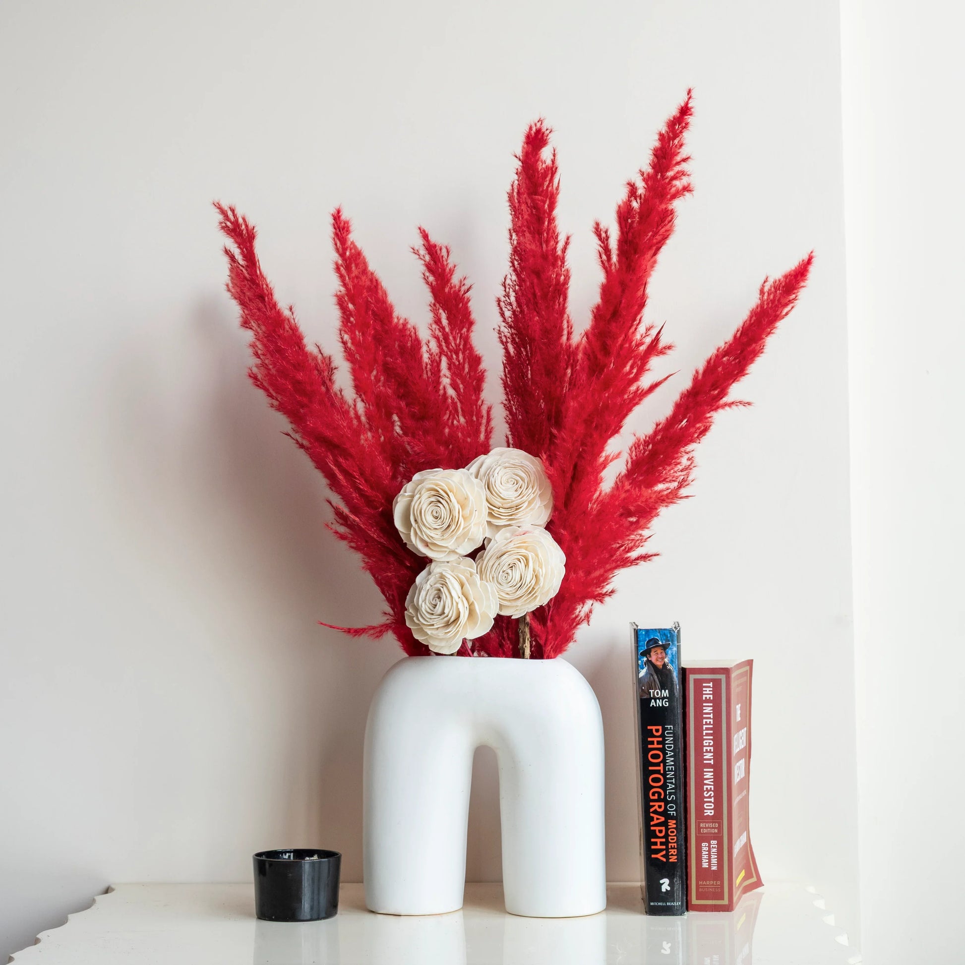 Get this combination of beautiful crimson red pampas grass (10 Sticks) and handmade Sola Wood Flowers (4 Sticks) to decorate your vases. Give your room a boho pinteresty look with these Flowers and Fillers! 🤎