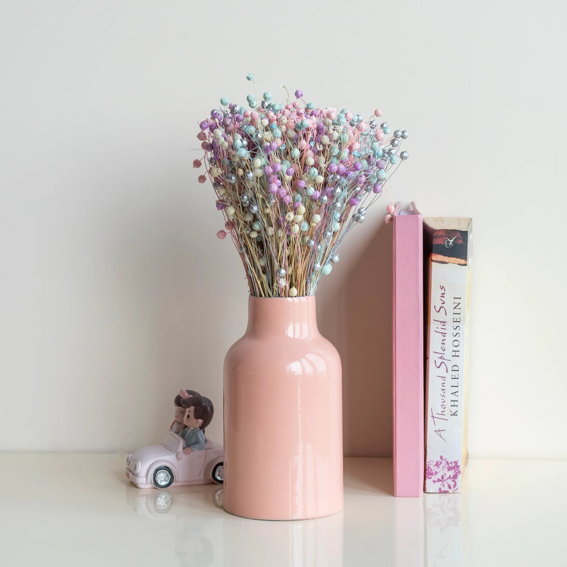 The set includes a beautiful Unicorn Bunch in Pink Bloom Vase This bouquet requires very minimal maintenance and can last for a year or more.